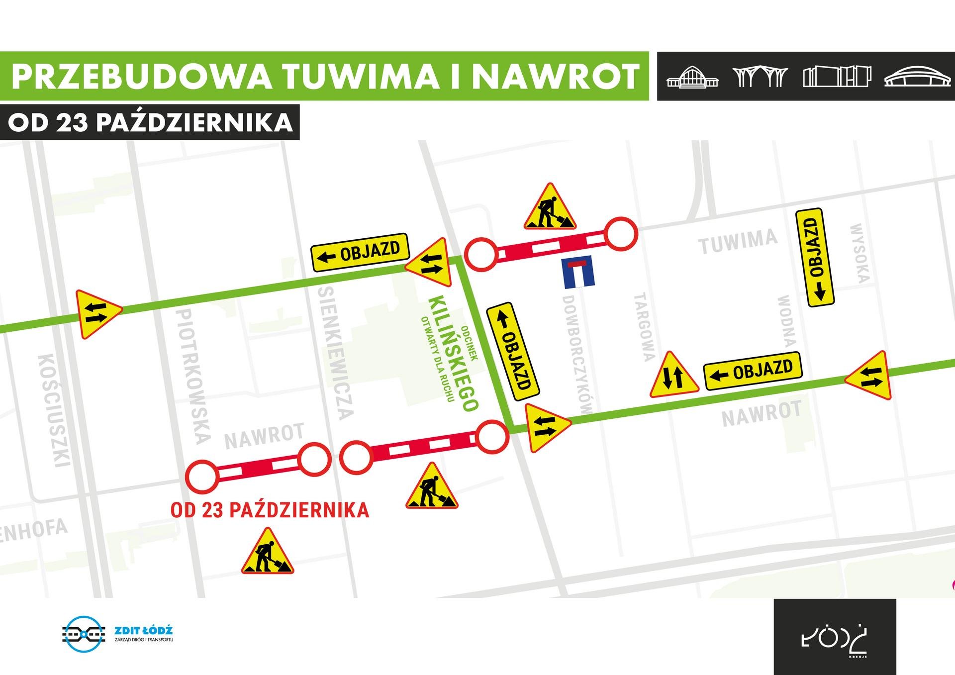 Drogowcy rozpoczynają kolejne etapy przebudowy ulic w ramach rewitalizacji obszarowej. Po pracach rozbiórkowych na ul. Nawrot, zamknięta zostanie w całości jezdnia pomiędzy ul. Piotrkowską, a ul. Sienkiewicza. Pozwoli to na rozpoczęcie prac nad infrastrukturą podziemną i dalsze prace drogowe. Wraz z zamknięciem tego odcinka ul. Zamenhofa od al. Kościuszki do ul. Piotrkowskiej stanie się dwukierunkowa. Nadal prowadzone są prace drogowe na ul. Nawrot od ul. Sienkiewicza do ul. Kilińskiego. Ulica Sienkiewicza będzie cały czas przejezdna w obu kierunkach.