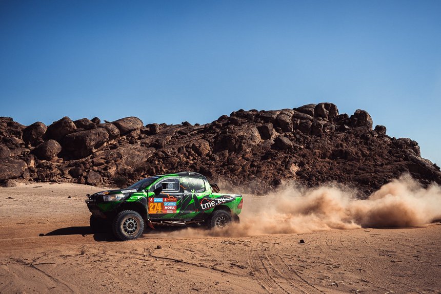 Po prezentacji i pokazowym starcie na rampie w Monako wszystkie zespoły zostały przetransportowane do Maroka, gdzie rozpoczęły rajdową rywalizację. Pierwszy dzień ekipa Proxcars TME Rally Team zakończyła na drugiej pozycji, ale później nie mogła narzekać na nadmiar szczęścia. Drugiego dnia pod koniec odcinka specjalnego doszło do bliskiego spotkania ze stojącym za wydmą autem organizatorów wyścigu. Na szczęście nikomu nic się nie stało i po serwisie „Kicia”, czyli Toyota Hilux T1, była gotowa do dalszej jazdy.