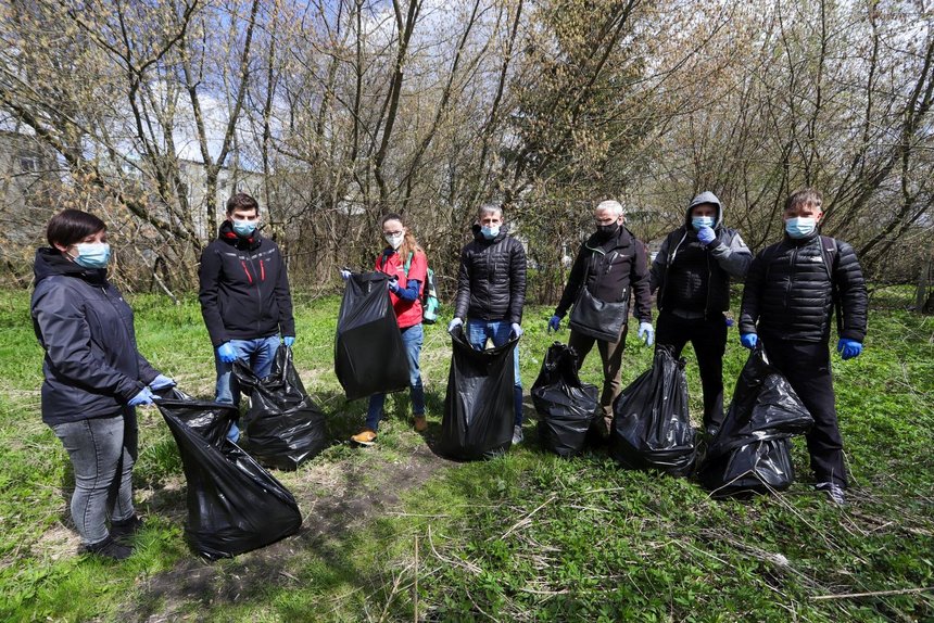 Pracownicy Urzędu Miasta Łodzi wraz z pracownikami firmy WHIRPOOL zbierali śmieci na Bałutach w okolicach parku Ocalałych.