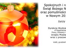 Spokojnych i radosnych Świąt Bożego Narodzenia oraz pomyślności i sukcesów w Nowym 2019 Roku życzy Dyrekcja Wydziału Sportu w Departamencie Pracy, Edukacji i Sportu Urzędu Miasta Łodzi wraz z pracownikami.