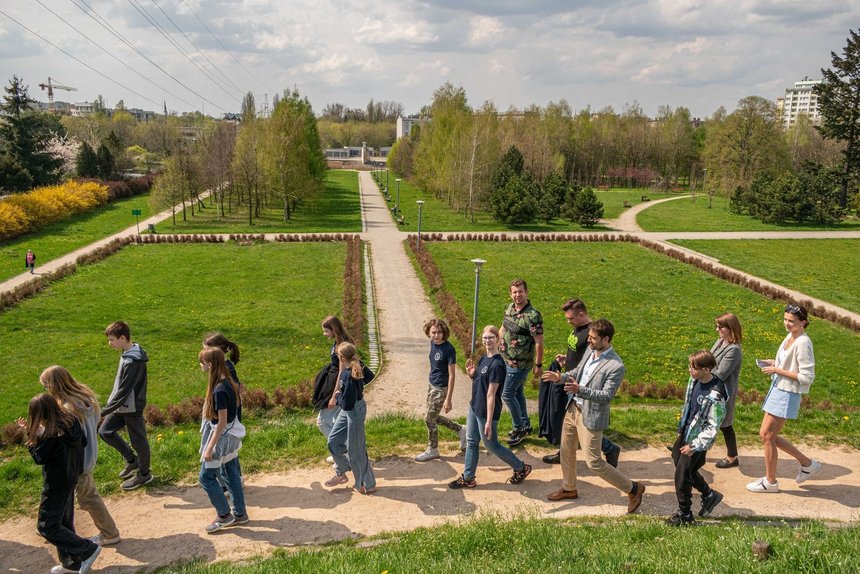 Wiceprezydent Łodzi Adam Pustelnik oraz uczniowie SP nr 7. Fot. Patryk Wacławiak.