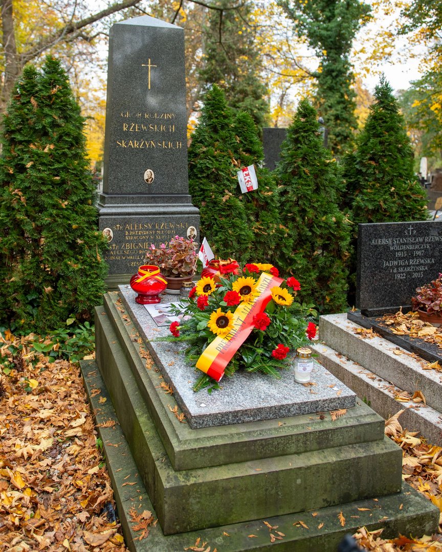 Kwiaty i znicze na grobach prezydentów Łodzi w dniu Wszystkich Świętych