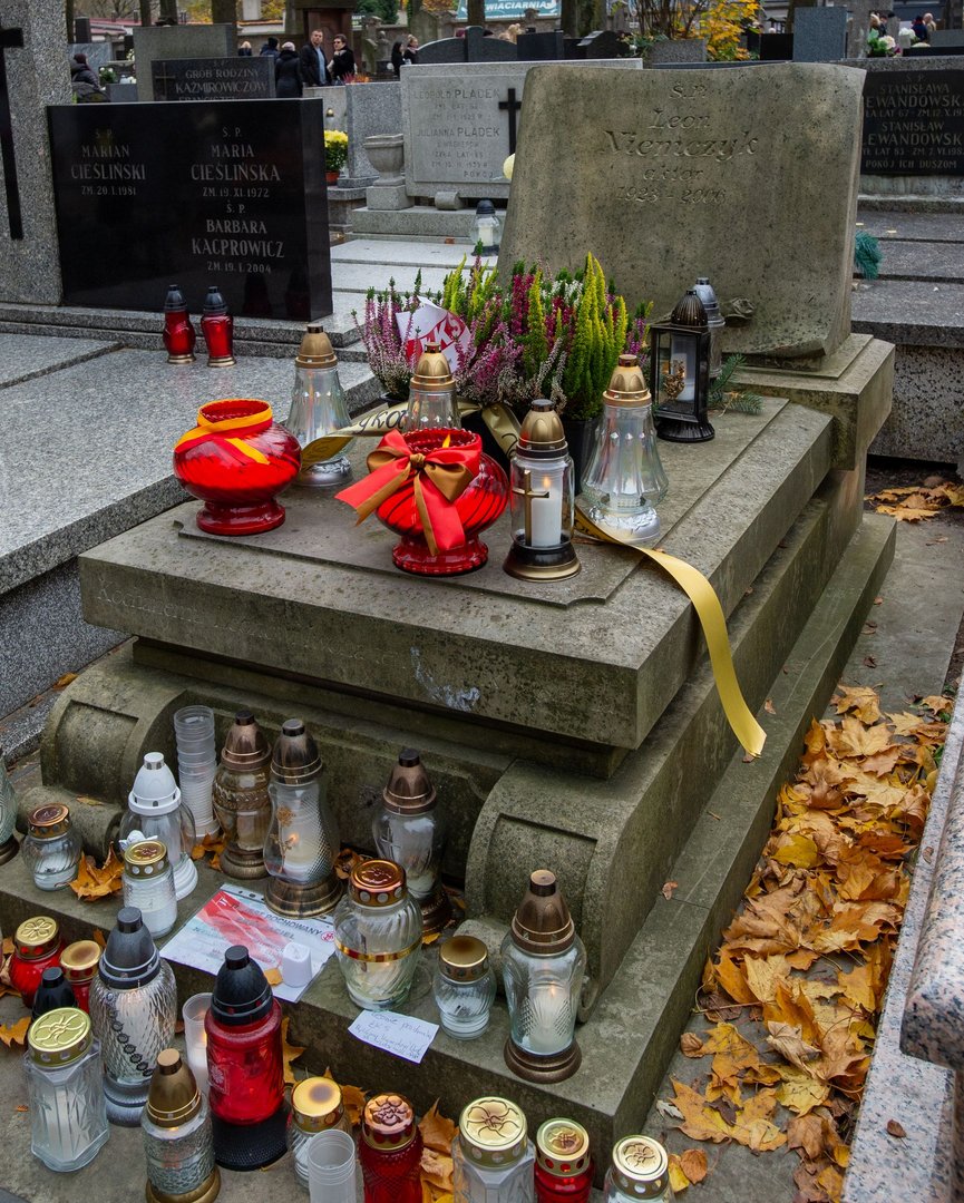 Kwiaty i znicze na grobach prezydentów Łodzi w dniu Wszystkich Świętych