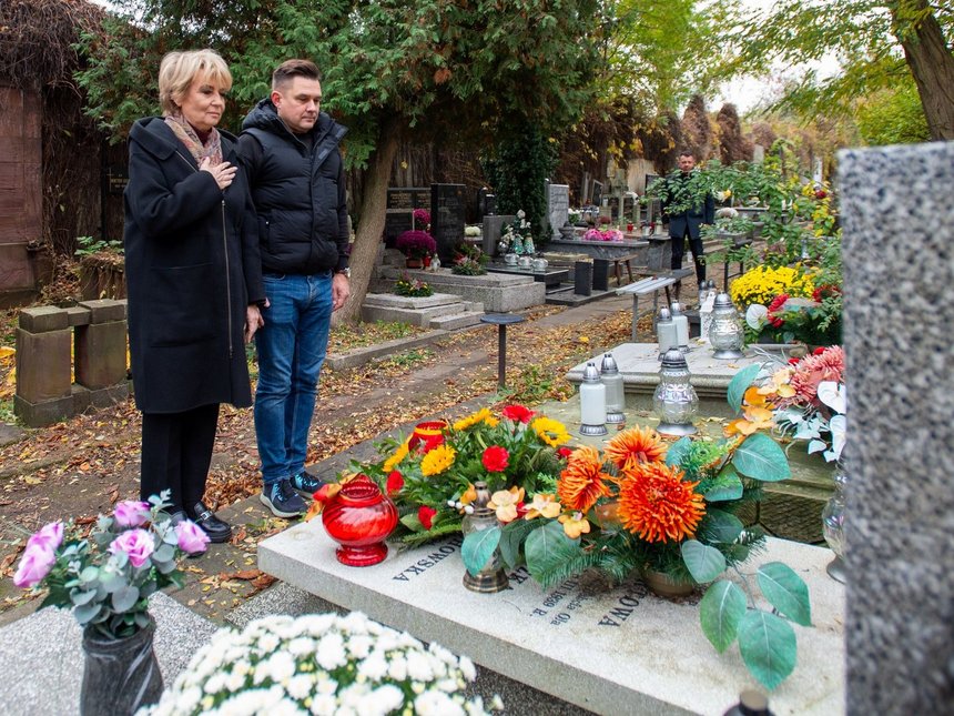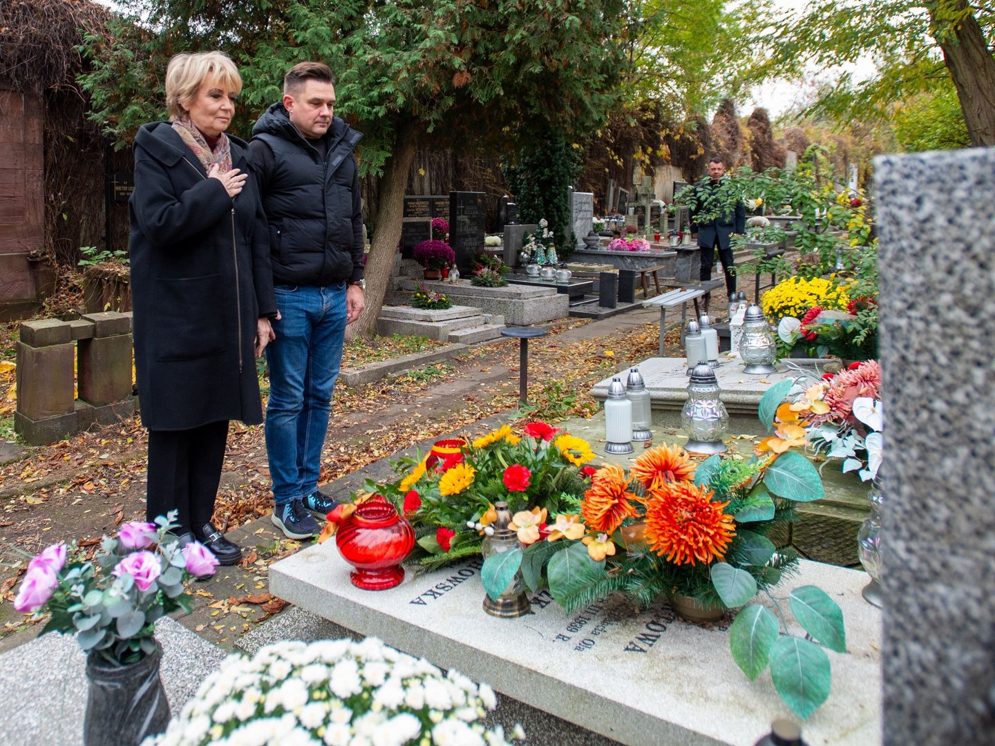 Kwiaty i znicze na grobach prezydentów Łodzi w dniu Wszystkich Świętych