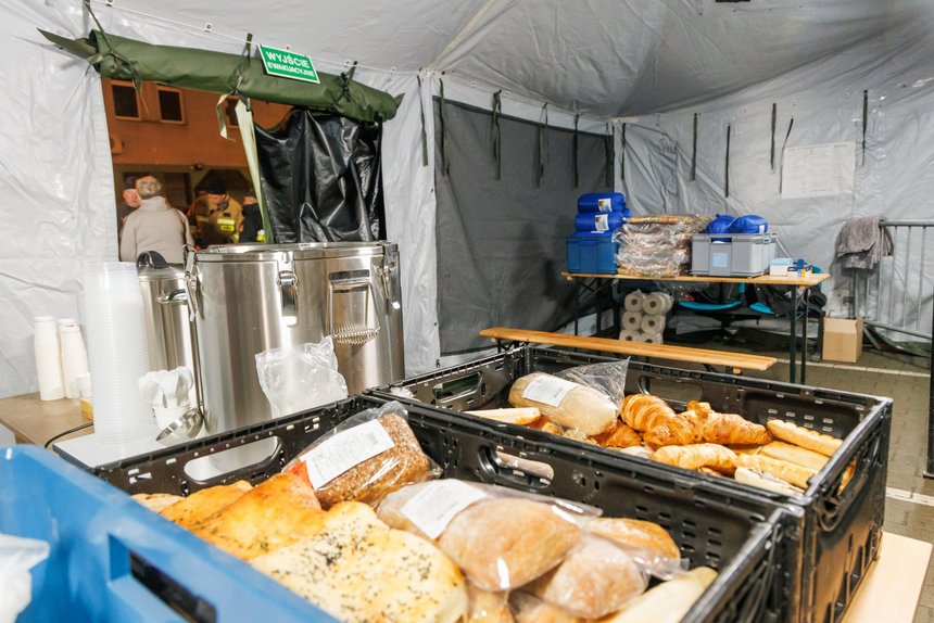 Namiot Pełen Ciepła przed główną siedzibą MOPS