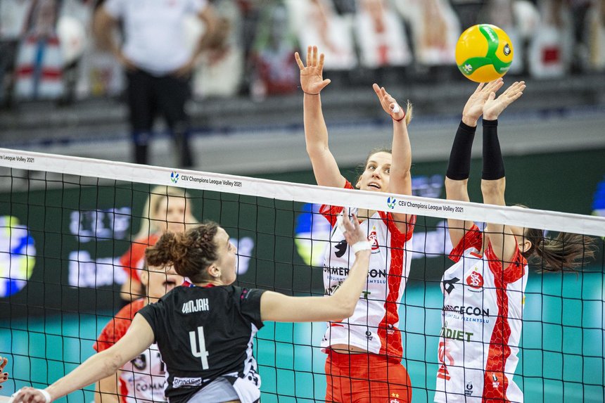 04.02.2021 LODZ ULICA BANDURSKIEGO SPORT ARENA CEV LIGA MISTRZYN KOBIET 2020 ( CEV CHAMPIONS LEAGUE VOLLEY 2021 WOMEN ) MECZ ASPTT MULHOUSE VB - LKS COMMERCECON LODZ NZ. IVANA VANJAK, NADJA NINKOVIC, ALEKSANDRA WOJCIK FOTO RADOSLAW JOZWIAK / CYFRASPORT