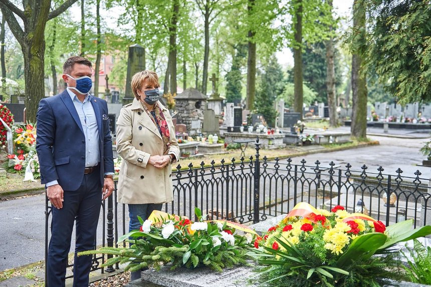Pamięci prezydenta - społecznika. Kwiaty na grobie Aleksego Rżewskiego z okazji Święta Pracy