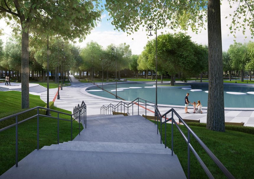 Park Staromiejski - wizualizacja - staw, widok od ulicy Wolborskiej