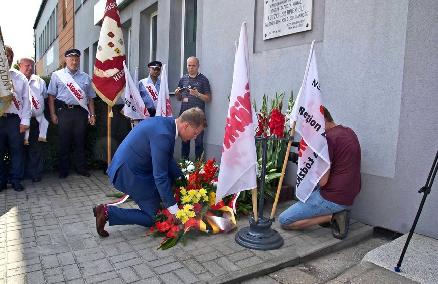 Przed tablicą pamiątkową na budynku dawnej zajezdni przy ul. Kraszewskiego odbyły się obchody 43 rocznicy strajku w łódzkim MPK.