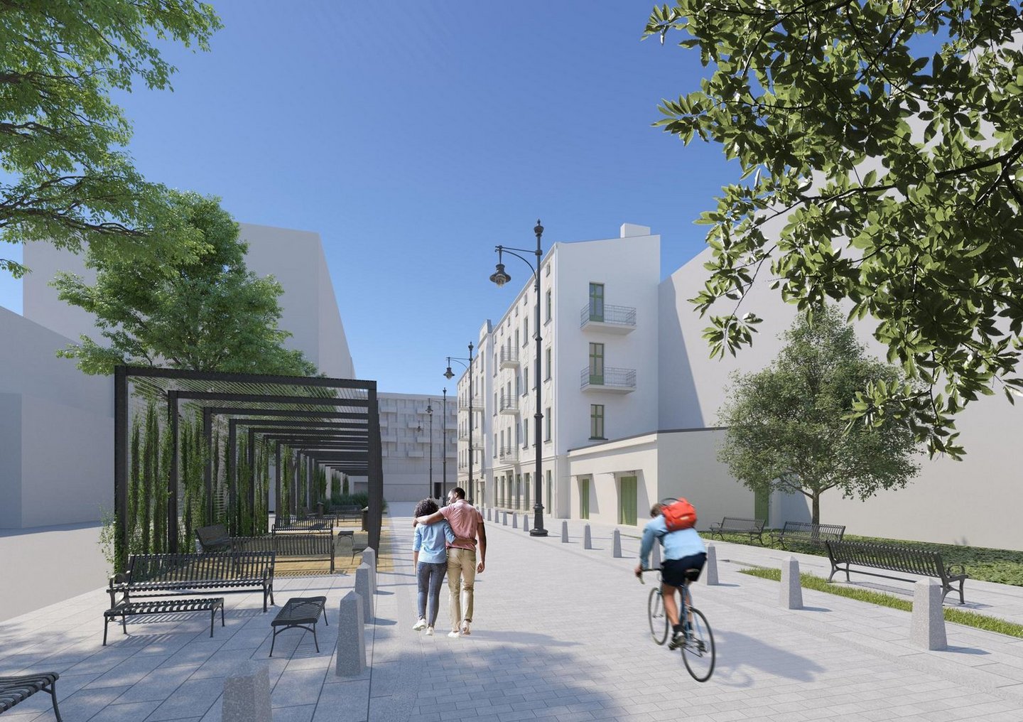 Piotrkowska 115 - wizualizacja - widok podwórka z poziomu przechodnia