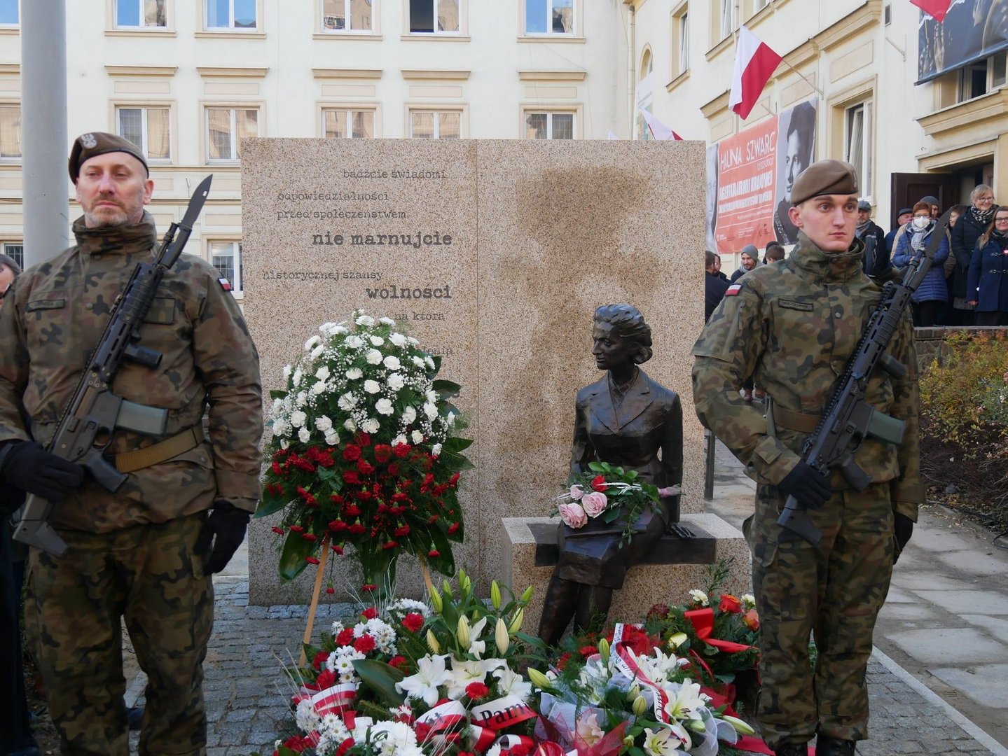 Wybitna łodzianka „zasiadła” przed Muzeum Tradycji Niepodległościowych. Odsłonięto rzeźbę-ławeczkę Haliny Szwarc-Kłąb