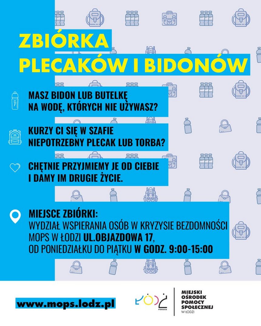 Zbiórka bidonów i plecaków dla osób w kryzysie bezdomności