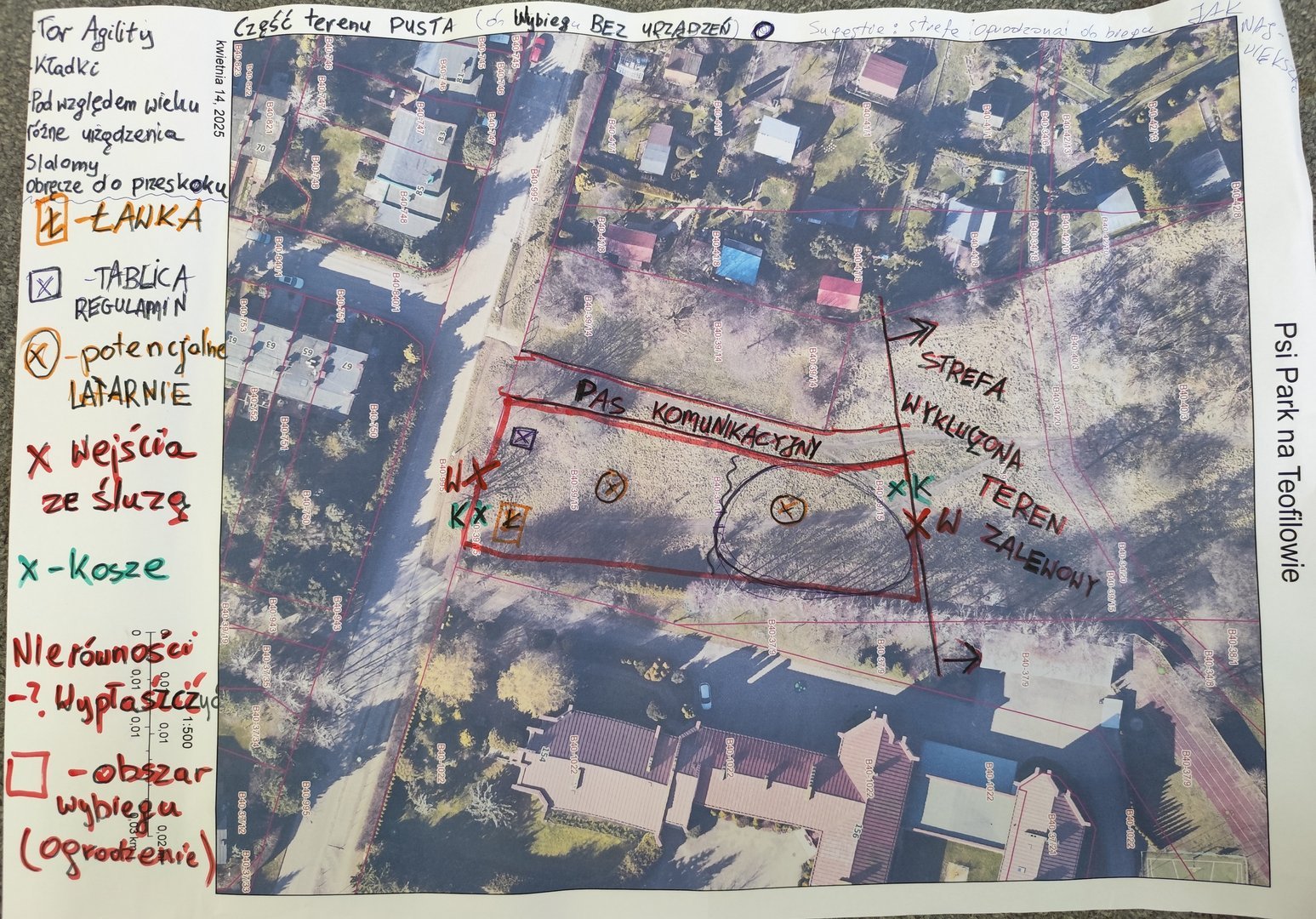 Wspólnie z mieszkańcami została wypracowana koncepcja, która w formie protokołu z wytycznymi przekazana zostanie Wykonawcy. Owocem prac jest rysunek prezentujący poruszane zagadnienia w postaci graficznej.