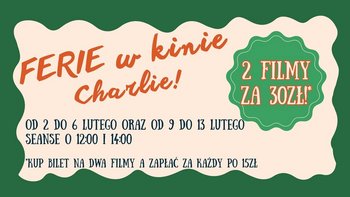 Zapraszamy dzieci i młodzież na filmowe ferie w Kinie Charlie! więcej