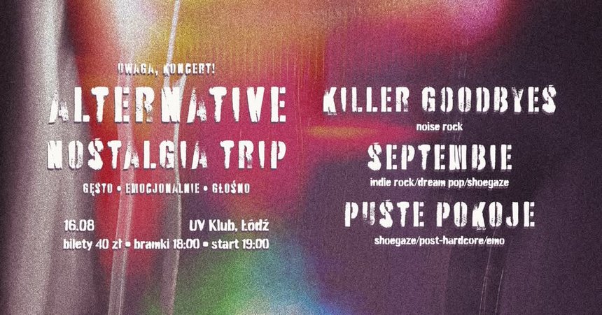 Killer Goodbyes to solowy, około noise rockowy projekt z Gdańska, który łączy chwytliwe kompozycje z hałaśliwą ścianą dźwięku o sile startującego odrzutowca. Na żywo to czysta energia - nie do przeoczenia.