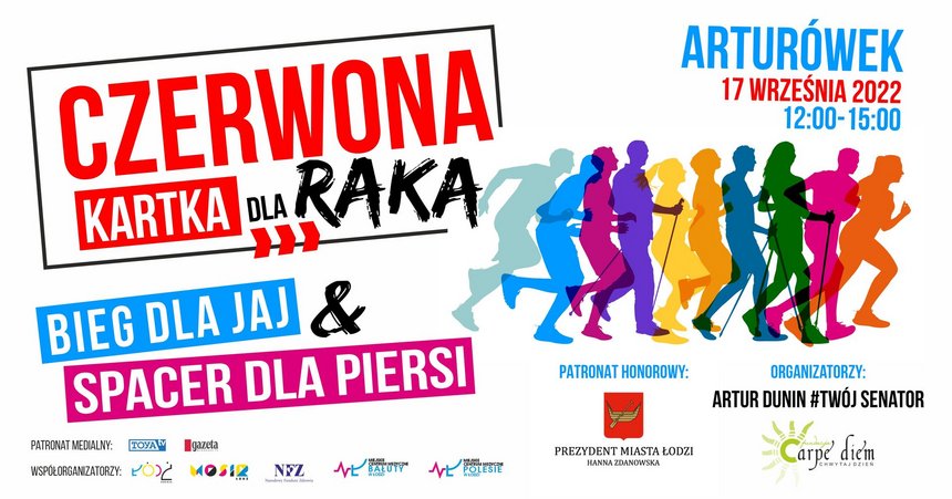 Kochani, październik jest miesiącem walki z rakiem piersi, a listopad z rakiem gruczołu krokowego u mężczyzn - „powalczmy” z nim wspólnie już we wrześniu !!! 17 września w Arturówku odbędzie się pierwsza edycja eventu promującego badania profilaktyczne CZERWONA KARTKA DLA RAKA ???? BIEG DLA JAJ & SPACER DLA PIERSI Jest to wydarzenie PANAD WSZYSTKIMI PODZIAŁAMI ‼️‼️‼️ tak jak ponad wszystkimi podziałami atakuje RAK nie patrząc na wiek, poglądy polityczne, przynależność etniczną, barwy klubowe, światopogląd czy status społeczny „swojej ofiary”. ⤵️ 12:00 - 12:15 Rozpoczęcie eventu 12:15 - 12:20 Czerwona kartka dla raka - wspólne zdjęcie 12:20 - 12:30 Rozgrzewka do biegu i spaceru 12:30 - 13:00 Bieg dla jaj 13:00 - 14:00 Spacer dla piersi 12:00 - 15:00 Badania profilaktyczne (m. in. badanie ciśnienia, pomiar cukru), nauka samobadania, mammobus, dentobus, nauka pierwszej pomocy, wyrobienie karty EKUZ i Internetowego Konta Pacjenta, poczęstunek 15:00 Zakończenie eventu