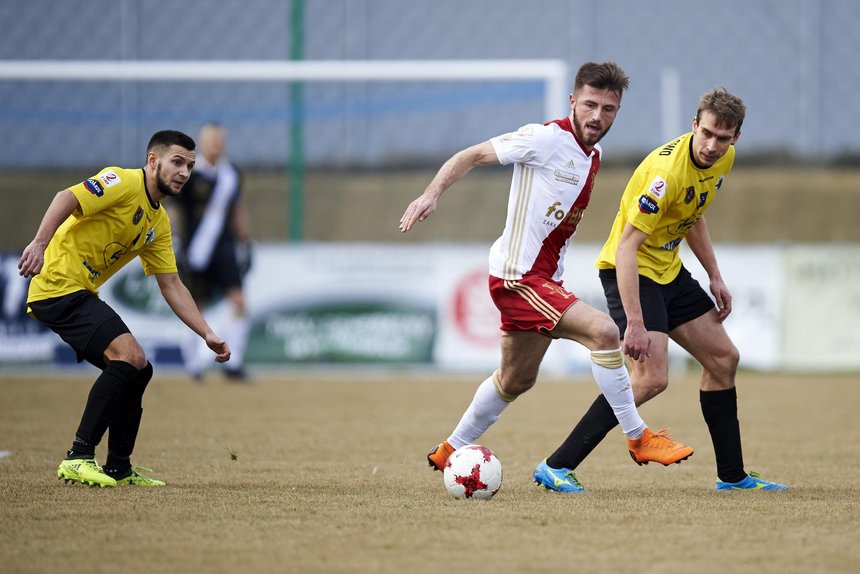 Mecz 25. kolejki 2. ligi piłki nożnej.