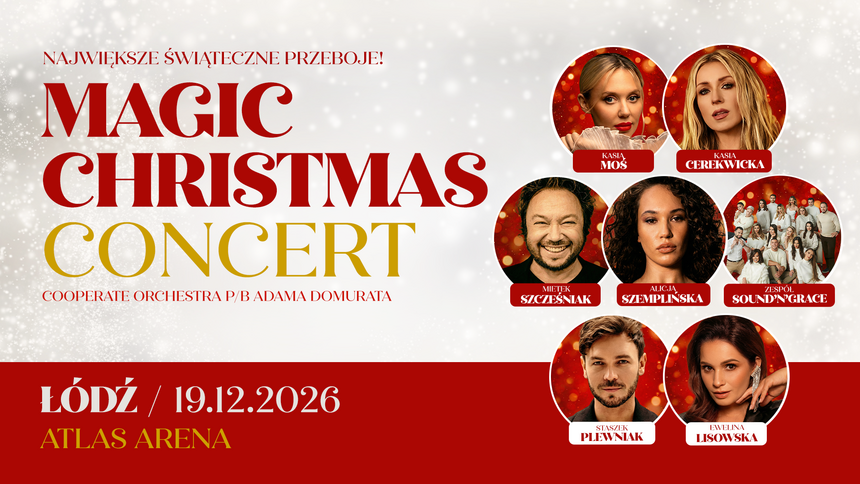 Na scenie Atlas Areny zabrzmią największe światowe hity świąteczne w wyjątkowych, orkiestrowych aranżacjach. Wystąpią cenieni i utalentowani artyści: Kasia Moś, Kasia Cerekwicka, Ewelina Lisowska, Alicja Szemplińska, Mietek Szcześniak oraz Staszek Plewniak. Publiczność zobaczy również energetyczny zespół Sound and Grace oraz Orkiestrę Symfoniczną CoOperate Orchestra pod batutą maestro Adama Domurata.
