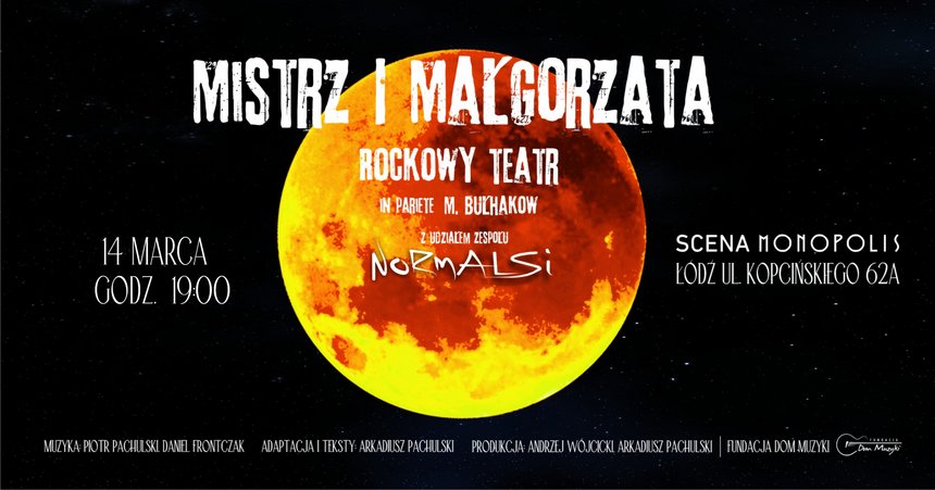 Twórcy „Łajzy” zaprezentują „Mistrza i Małgorzatę” na deskach Sceny Monopolis w sposób, w jaki nikt dotychczas tego nie uczynił. Unikalna adaptacja w formie łączącej teatr dramatyczny i blues – rock – operę, premierowa muzyka grana na żywo, opowieść o Miłości i Sztuce w zderzeniu z komunizmem, o wolności, wierności i zdradzie, wreszcie o dealu medycyny i władzy totalitarnej. Ale i o mistycznej głębi ludzkiego życia. Normalsi zaprosili do scenicznej pracy nad arcydziełem Bułhakowa znakomitych łódzkich artystów – aktorów i muzyków. Już dziś gorąco zapraszamy na spektakl „Mistrza i Małgorzaty” w reżyserii Marka Kasprzyka do teatru Scena Monopolis w Łodzi!