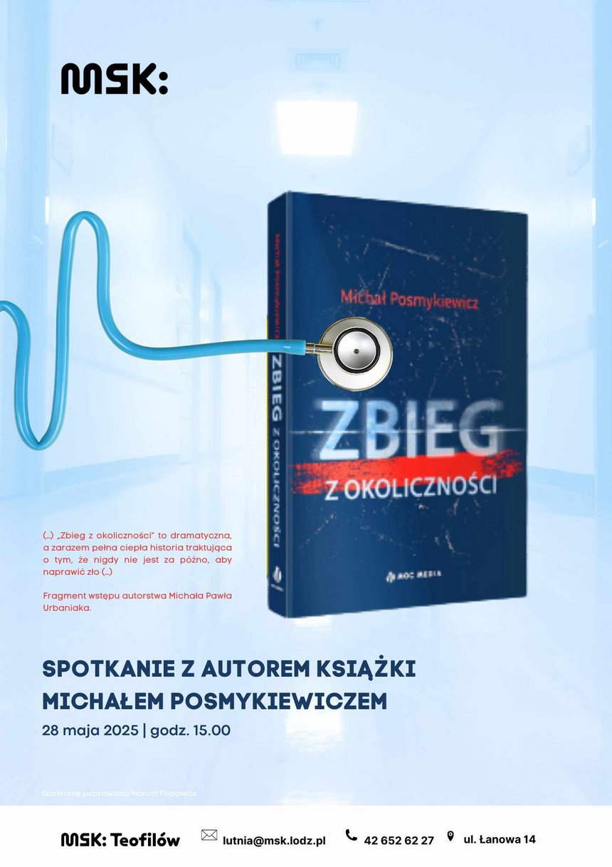Michał Posmykiewicz-Chirurg z Łodzi, udziela się charytatywnie w Polskim Czerwonym Krzyżu. To człowiek o licznych zainteresowaniach. Szkolił się w zakresie wypraw speologicznych, nurkowania, szermierki szablą wg. tradycji polsko-węgierskiej. Kocha teatr i książki. W liceum zaczął pisać wiersze, dopiero później zajął się prozą. Jest laureatem konkursów literackich.