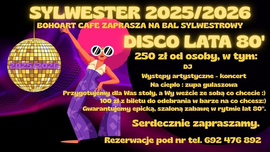 Serdecznie zapraszamy na sylwestra 2025/2026 w stylu lat 80.