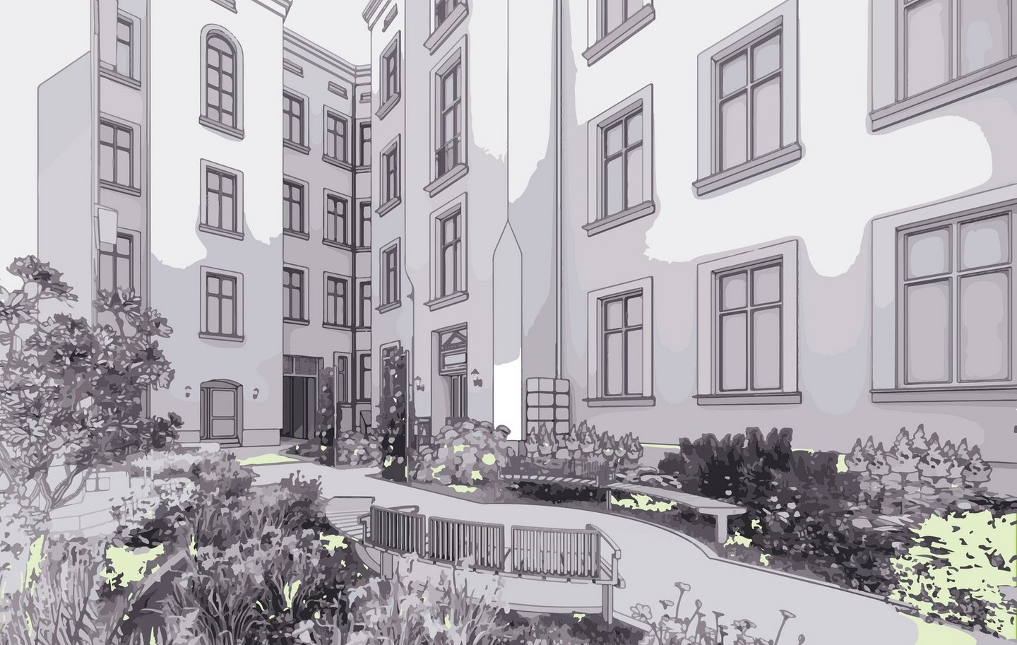 Wraz z przedstawicielami Biura Architekta Miasta chcieliśmy poznać zdanie mieszkańców, dowiedzieć się czego potrzebują i oczekują względem zmian na podwórku. Projekt ma na celu stworzenie przestrzeni lepszej do życia, bardziej zielonej, ale jednocześnie odpowiadającej potrzebom jej codziennych użytkowników. Rearanżacja podwórka jest realizowana w ramch międzynarodowego projektu Re-Public Spaces. W ramach interdyscyplinarnej współpracy jako ekspertów zaproszono pracowników naukowych Uniwersytetu Łódzkiego. Profesor Kinga Krauze -ekohydrolożka z Polskiej Akademii Nauk- konsultowała projekty aranżacji podwórka wypracowanych wspólnie z mieszkańcami.
