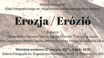 Łódzkie Towarzystwo Fotograficzne oraz Koło Fotograficzne im. Hugó Wesel w Kiskunfélegyháza (Węgry) zapraszają na wernisaż wystawy pt. "Erozja - Erózió". więcej