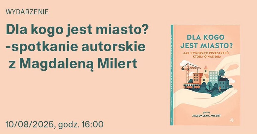 Magdalena Milert, architektka i urbanistka, analizuje problemy polskich miast i prezentuje rozwiązania mogące uzdrowić naszą przestrzeń. Podczas spotkania przeniesiemy się w różne części świata, by zobaczyć, że zmiany są możliwe. Porozmawiamy o wizji miasta otaczającego opieką wszystkich mieszkańców – nie tylko silnych, sprawnych i głośno deklarujących swoje potrzeby. O tym, jak stworzyć miasto na nowo, żeby nie musiało być dłużej nieprzystępne, przegrzane i drogie. Także na przykładzie naszego podwórka.