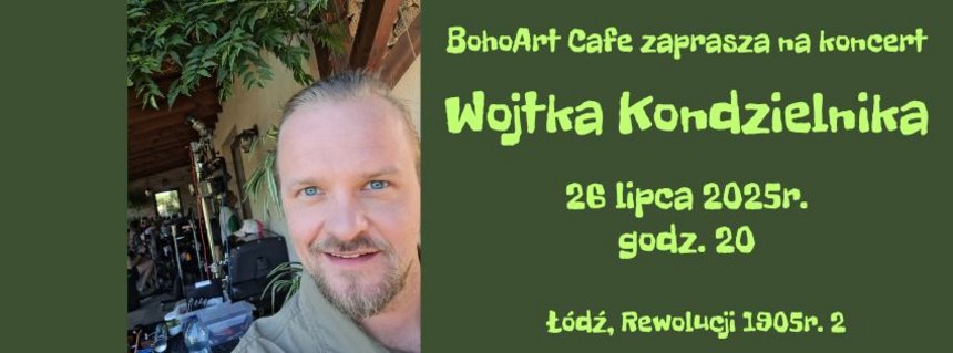 Koncert - Wojtek Kondzielnik. w BohoArt Cafe kategoria: Imprezy i koncerty autor: Jacek Słodziński / BP BohoArt Cafe (Łódź, ul. Rewolucji 1905 roku 2) 26.07.2025 godz. 20:00 Wojtek Kondzielnik to aktor, muzyk i bardzo fajny człowiek. Sami zobaczycie:) Więcej informacji BohoArt Cafe wróć do aktualności wydrukuj
