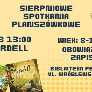 Everdell i będziemy grać w dwie wersje - dla młodszych i starszych dzieciaków. Nie trzeba znać zasad ani mieć doświadczenia z planszówkami – wszystkiego nauczymy na miejscu! Wystarczy przyjść, usiąść do stołu więcej