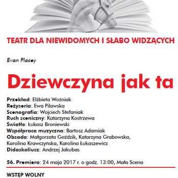 Wydarzenia: Teatr dla niewidomych i słabowidzących: Evan Placey "Dziewczyna jak ta"