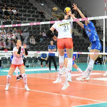 straty i raz nawet przegoniła rywalki. Na szczęście przyjezdne miały asa w rękawie. Był nim włoski atak Terry Enweonwu. Atakująca łódzkiej drużyny Popisywała się nie tylko mocnym uderzeniem, ale też znakomitą więcej
